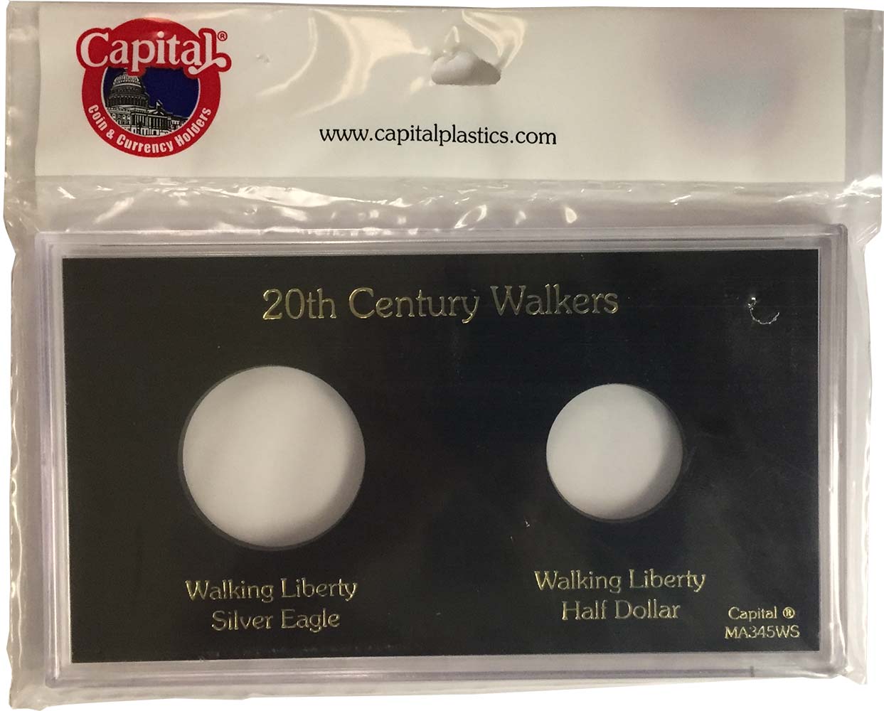Capital Plastics offers the largest selection of premium coin holders of any available brand. This is Capital's Meteor style snap together holder and has one hole for the two Twentieth Century coins using the Walking Liberty Design (Walking Liberty Half Dollar and American Silver Eagle).