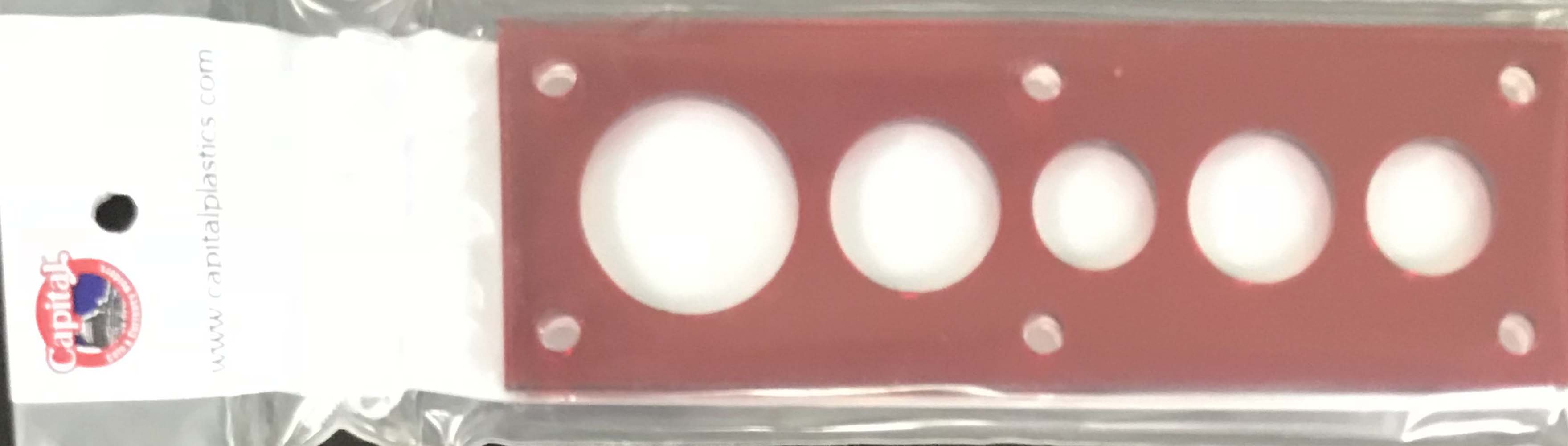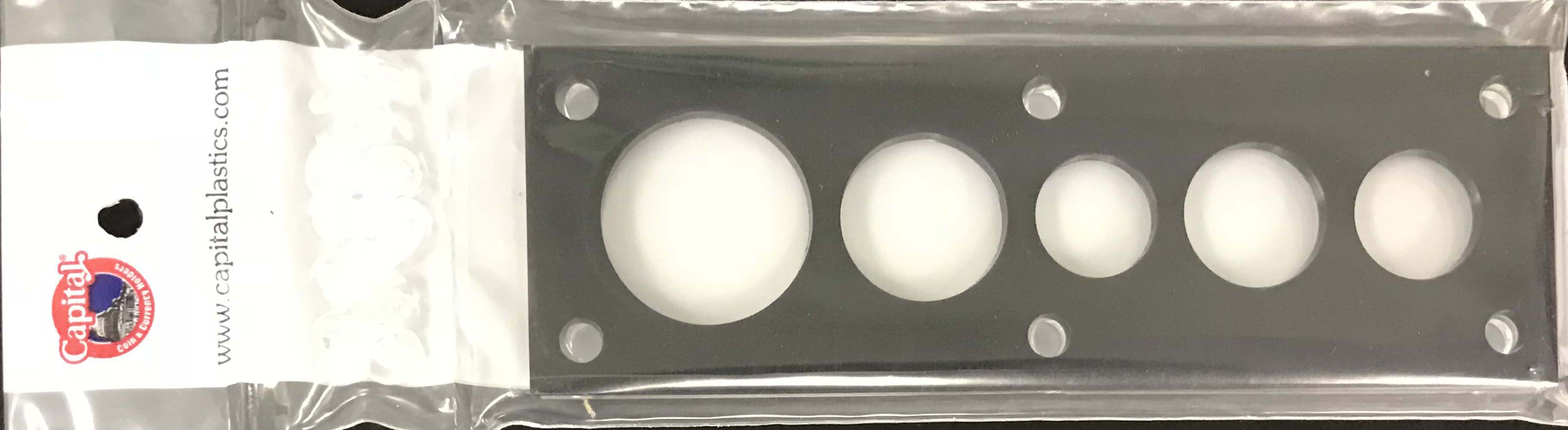 Capital Plastics offers the largest selection of premium coin holders of any available brand. This holder has five holes for a cent through half set. It is blank with no labeling.