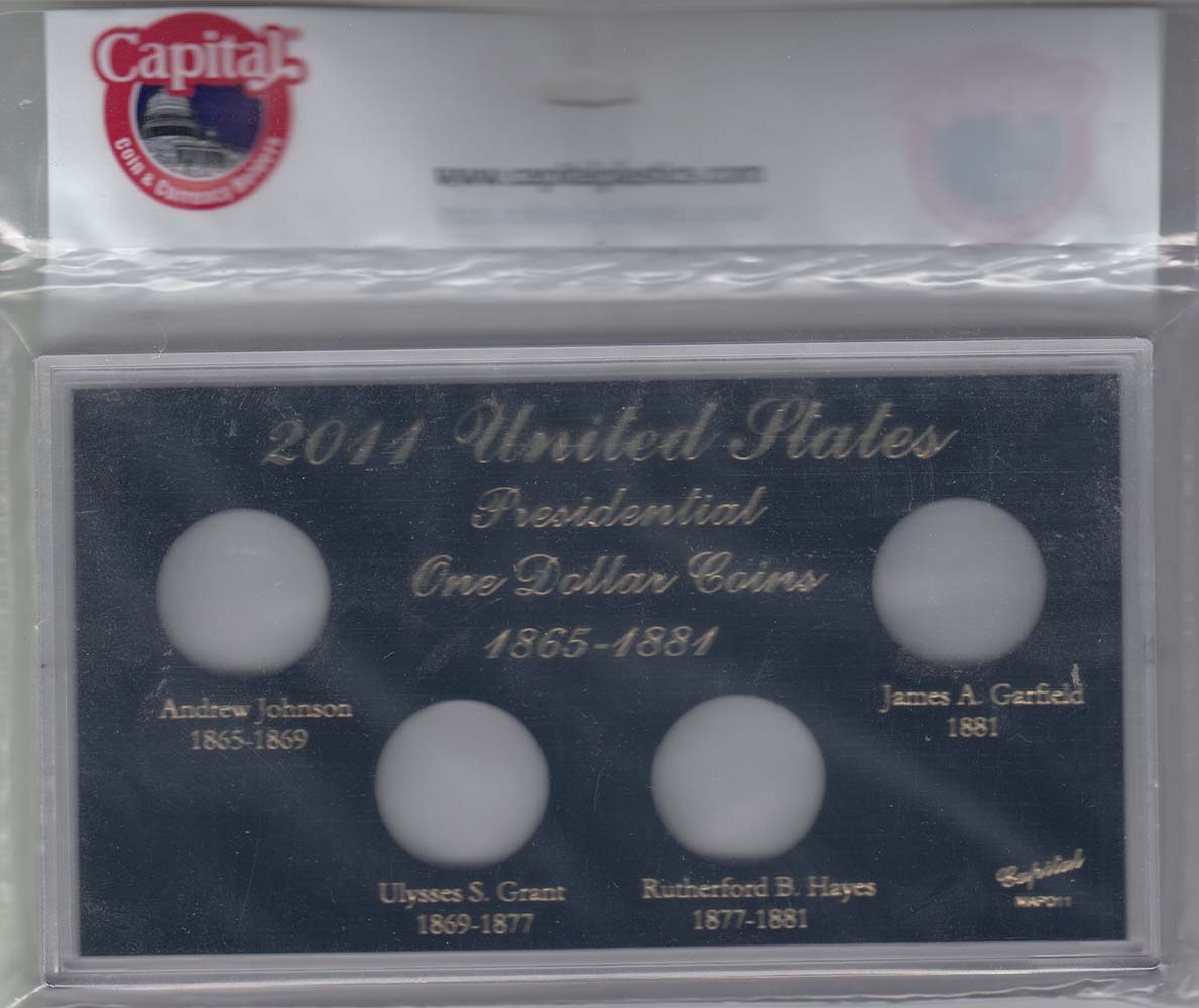 Capital Plastics offers the largest selection of premium coin holders of any available brand. This is Capital's Meteor style snap together holder with four holes for the Presidential Dollars issued in 2011.