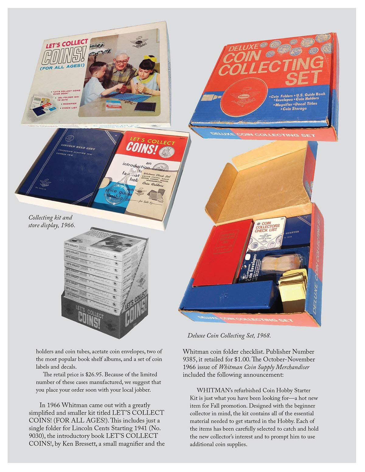 Among the highlights of this new book are several prototype products from the author’s collections that hitherto have been unknown to the hobby. Sections are devoted to many printing and binding errors, and these are attractively illustrated. Sidebar stories are devoted to the many custom printed folders and albums that Whitman has produced for various coin and medal programs. Finally, an extensive selection of Whitman coin collecting accessories is described and illustrated. These include numerous coin check lists, decal sheets, tubes, storage boxes, coin collecting kits and the very rare “Coin Store” board game from 1962.