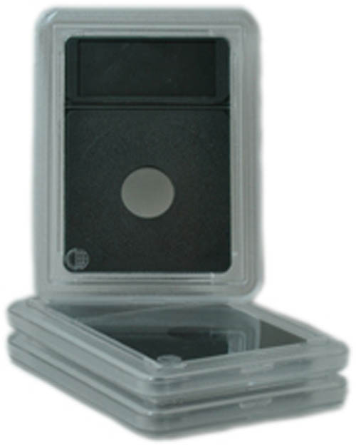 Coin World Premier coin holders come in 30 sizes and fit virtually every US coin made as well as many tokens, medals and world coins. The holders consist of a dark green elastic insert that fits between two clear snap together covers. When assembled the holder resembles the type of holder used by grading companies for certified coins. Coin World holders are an economical way to make your non-certified coins fit in with and store similarly as your certified coins. Holders are sold in packs of three holders and include inserts for labeling the coins.