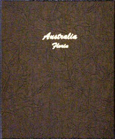 This Dansco Supreme Album for Australia Florins 1910-1963 (Dansco model number 7334) consists of a brown leatherette binder with loose-leaf hinged pages. The binder is gold stamped and the plastic coated pages are tan in color with black lettering. The pages are held in the binder with two posts that screw apart so that pages can be added, removed and replaced with ease. If a slip case is desired, the 3/4 inch slip case is the proper size for this album.