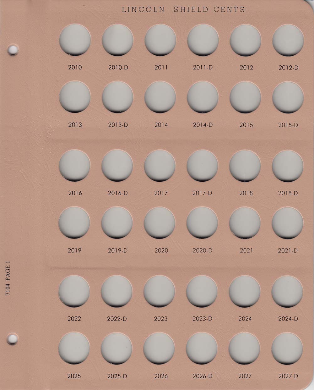 - Page 1 has 36 ports with dates for P and D Lincoln Shield Cents from 2010 to 2027.