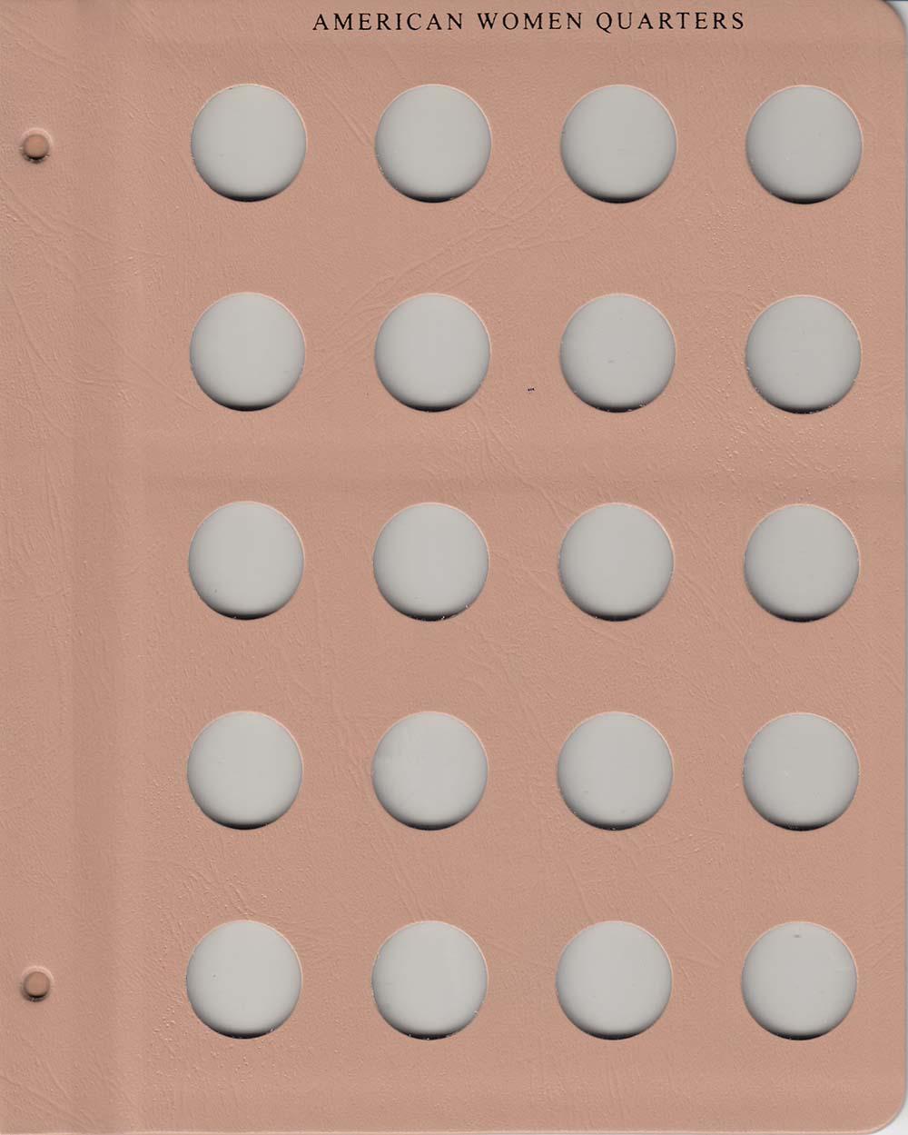 When there isn't a Dansco album that perfectly fits your collecting needs, make your own album using Dansco Blank Binders and Dansco Blank and Extra Pages. This page is labeled "American Women Quarters" at the top of the page while the twenty individual ports are unlabeled.