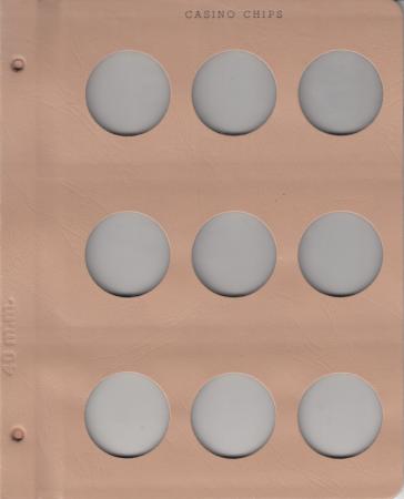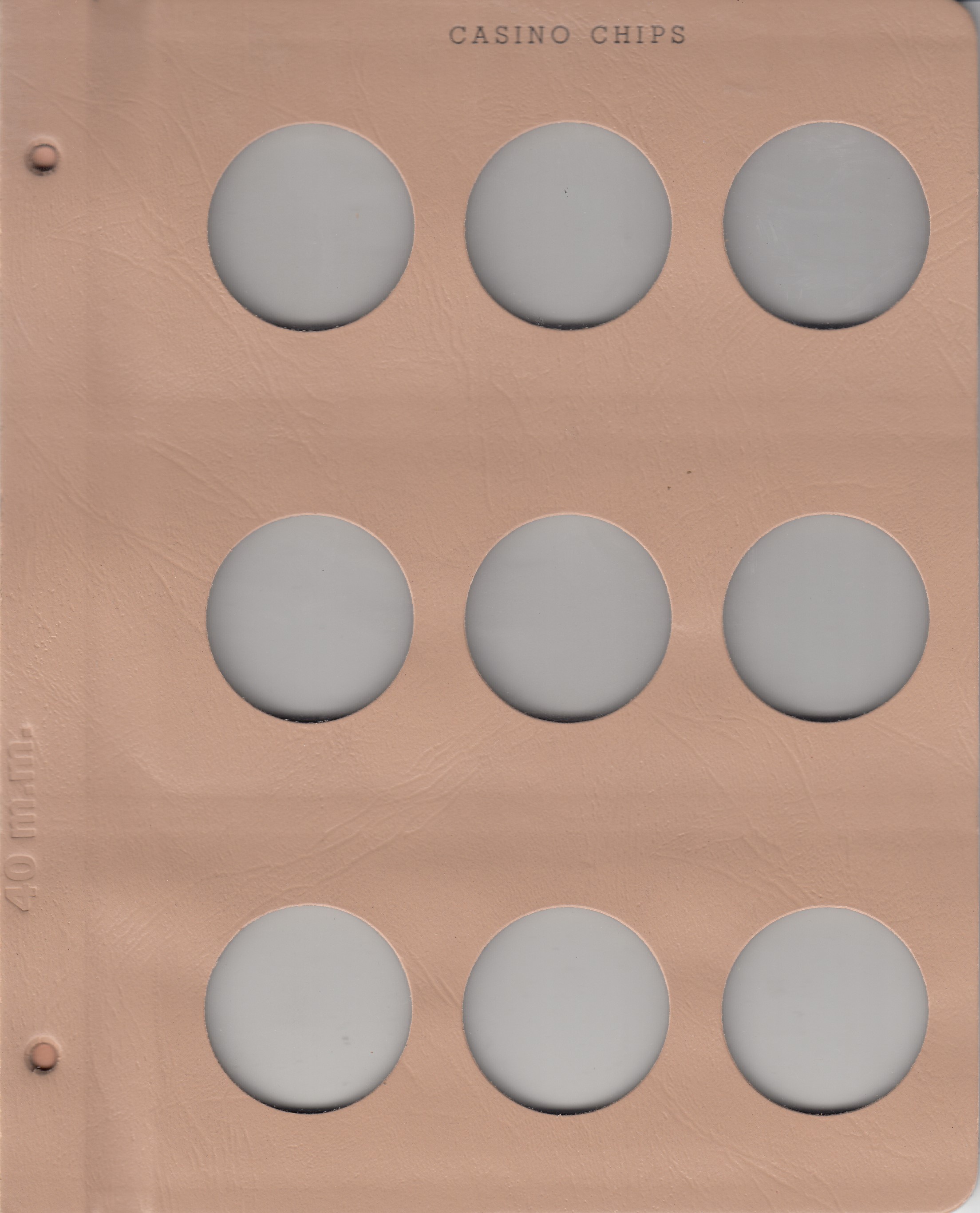 When there isn't a Dansco album that perfectly fits your collecting needs, make your own album using Dansco Blank Binders and Dansco Blank and Extra Pages. This page is labeled "Casino Chips" at the top of the page while the individual ports are unlabeled. The ports are 40mm in diameter.
