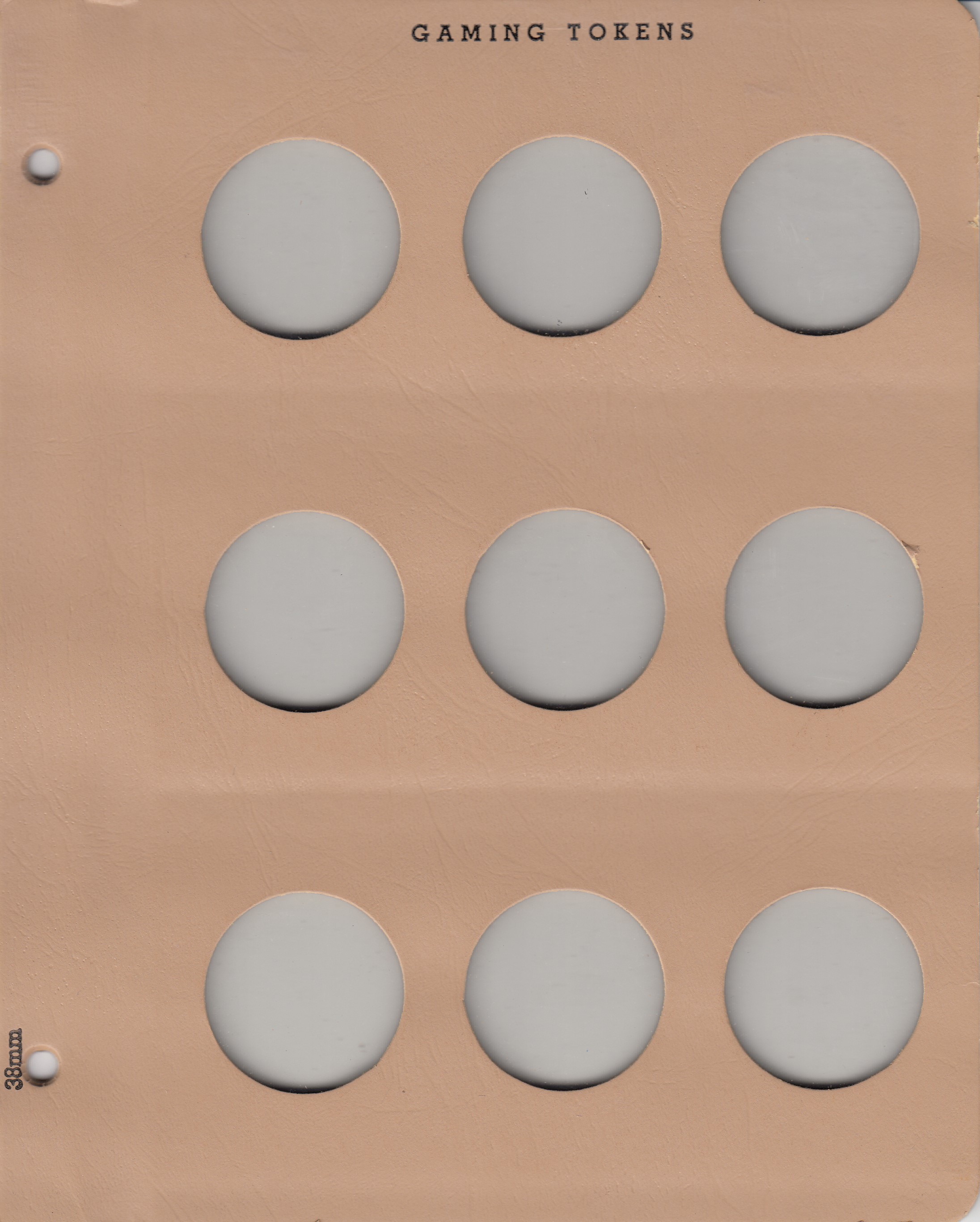 When there isn't a Dansco album that perfectly fits your collecting needs, make your own album using Dansco Blank Binders and Dansco Blank and Extra Pages. This page is labeled "Gaming Tokens" at the top of the page while the individual ports are unlabeled.