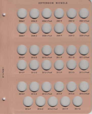Dansco Replacement Page 8114-1: Jefferson Nickels w/ Proof (2006-P to 2017-D)