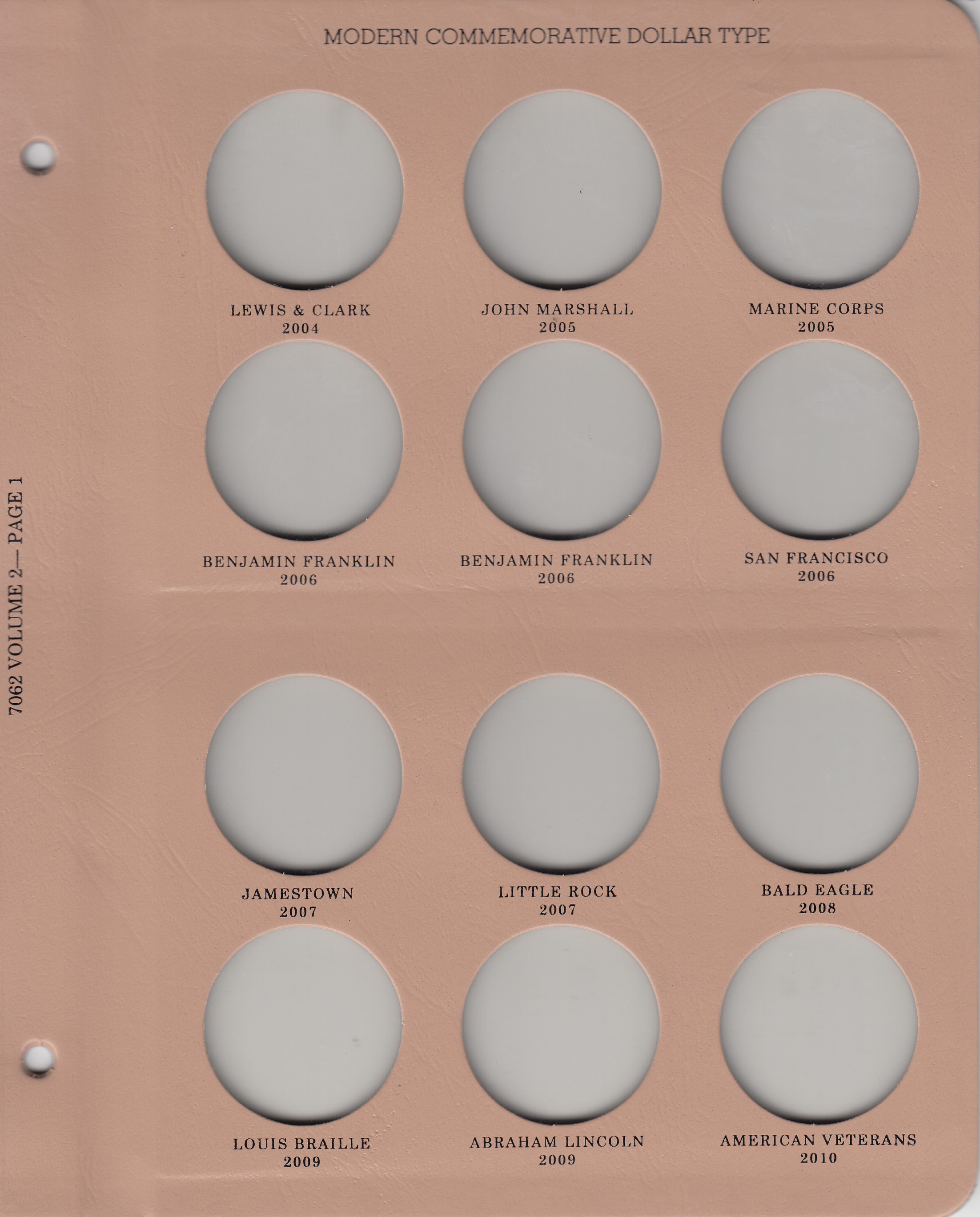 Dansco Replacement Page 7062 Vol 2-1: Modern Commemorative Type Dollars (2004-2010)