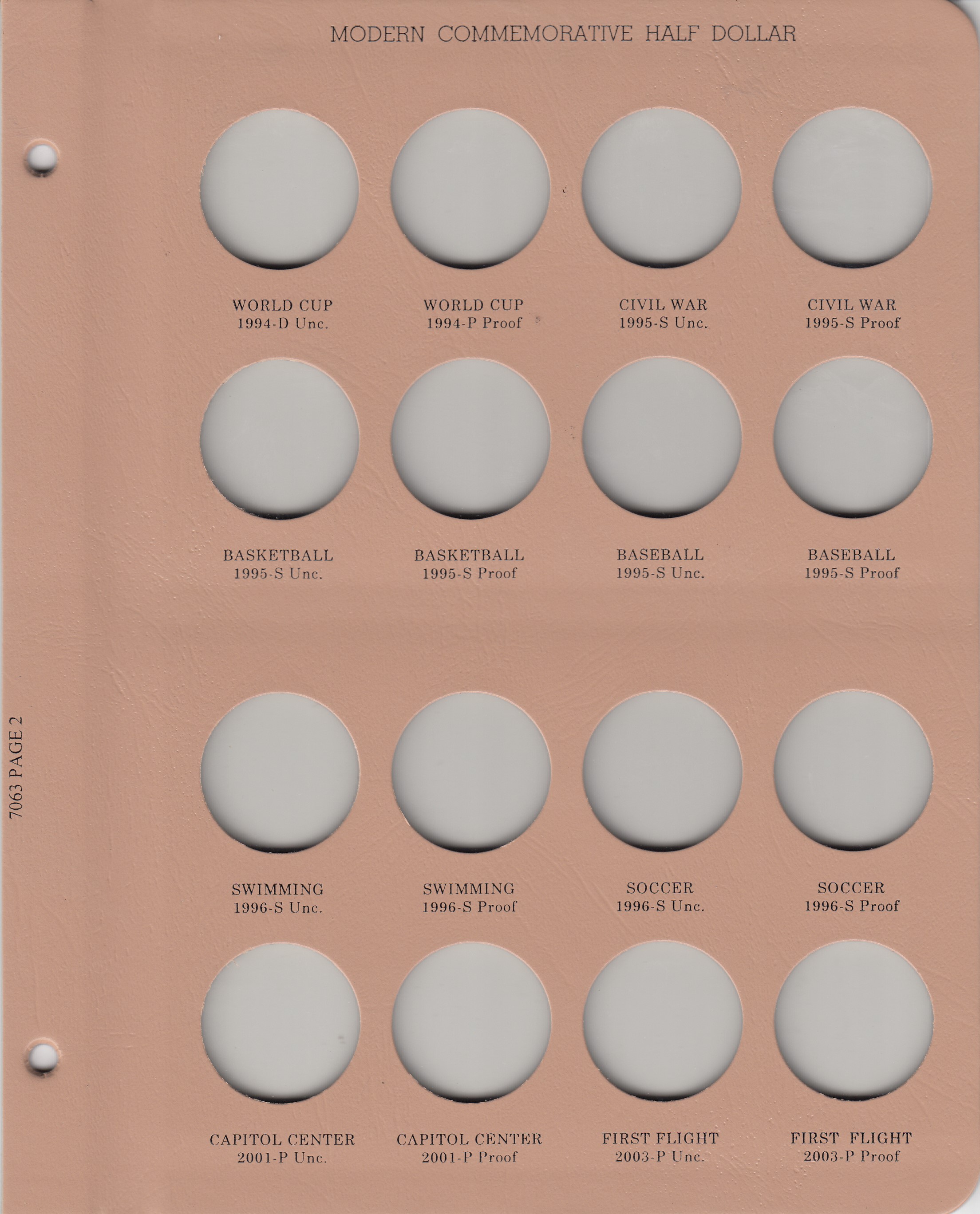 Dansco Replacement Page 7063-2: Modern Commemorative Half Dollar (1994 to 2001)