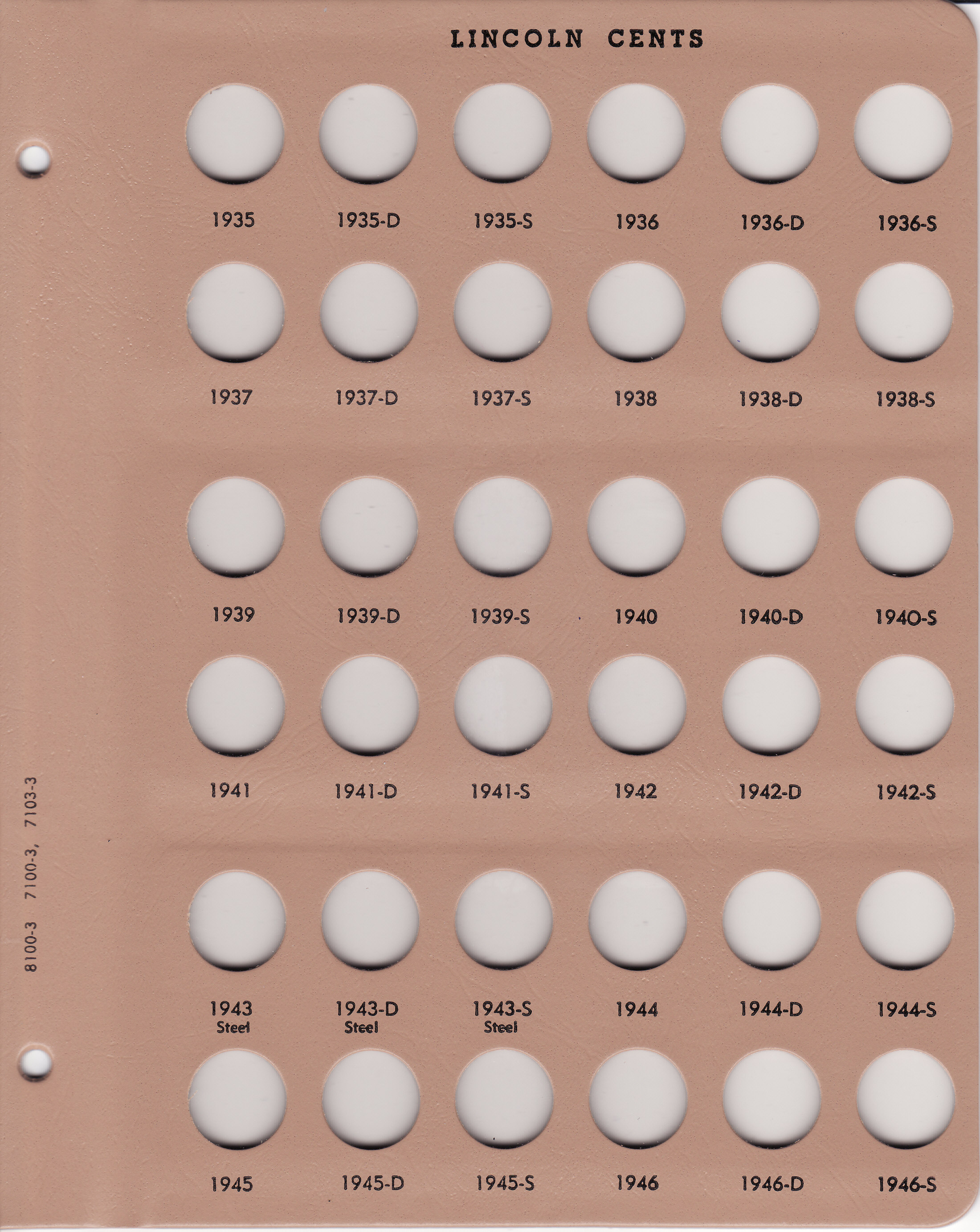 Dansco Replacement Page 7100-3/7103-3/8100-3: Lincoln Wheat Cents (1935 to 1946-S)