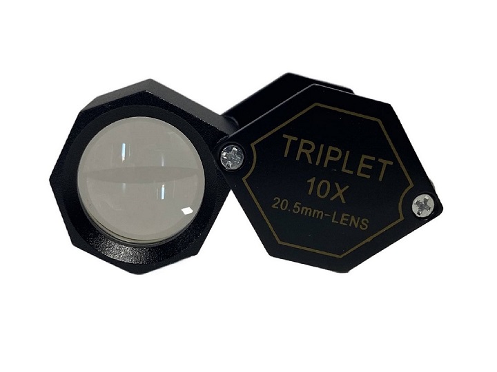 This loupe is a true triplet for those who prefer the hex shape at an economical price. It features 20.5 mm three-piece bonded lenses that are color-corrected for clear, accurate viewing. Each loupe comes in a protective leather case.