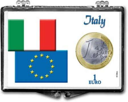 Edgar Marcus Snaplock Holders are made in the USA from high quality, crystal clear polystyrene. Each holder includes a cardboard insert featuring unique and beautiful artwork. The insert is hole-punched the perfect size to hold a coin relevant to the artwork. These holders are great for gift giving, rewards and storing and displaying collectible coins. This holder is designed to hold a 1 Euro coin from Italy. The artwork on the holder includes the flags for both Italy and the European Union. Coins shown in the picture are for illustration purposes only and are not included.