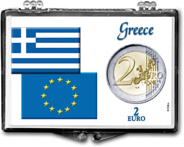 Edgar Marcus Snaplock Holders are made in the USA from high quality, crystal clear polystyrene. Each holder includes a cardboard insert featuring unique and beautiful artwork. The insert is hole-punched the perfect size to hold a coin relevant to the artwork. These holders are great for gift giving, rewards and storing and displaying collectible coins. This holder is designed to hold a 2 Euro coin from Greece. The artwork on the holder includes the flags for both Greece and the European Union. Coins shown in the picture are for illustration purposes only and are not included.