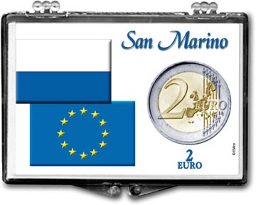 Edgar Marcus Snaplock Holders are made in the USA from high quality, crystal clear polystyrene. Each holder includes a cardboard insert featuring unique and beautiful artwork. The insert is hole-punched the perfect size to hold a coin relevant to the artwork. These holders are great for gift giving, rewards and storing and displaying collectible coins. This holder is designed to hold a 2 Euro coin from San Marino. The artwork on the holder includes the flags for both San Marino and the European Union. Coins shown in the picture are for illustration purposes only and are not included.