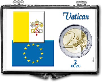 Edgar Marcus Snaplock Holders are made in the USA from high quality, crystal clear polystyrene. Each holder includes a cardboard insert featuring unique and beautiful artwork. The insert is hole-punched the perfect size to hold a coin relevant to the artwork. These holders are great for gift giving, rewards and storing and displaying collectible coins. This holder is designed to hold a 2 Euro coin from The Vatican. The artwork on the holder includes the flags for both The Vatican and the European Union. Coins shown in the picture are for illustration purposes only and are not included.
