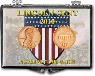 Edgar Marcus Snaplock Holders are made in the USA from high quality, crystal clear polystyrene. Each holder includes a cardboard insert featuring unique and beautiful artwork. The insert is hole-punched the perfect size to hold a coin relevant to the artwork. These holders are great for gift giving, rewards and storing and displaying collectible coins. This holder is designed to hold two 2010 Lincoln Union Shield Cents, one showing the obverse and one showing the reverse. Coins shown in the picture are for illustration purposes only and are not included.