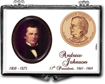Edgar Marcus Snaplock Holders are made in the USA from high quality, crystal clear polystyrene. Each holder includes a cardboard insert featuring unique and beautiful artwork. The insert is hole-punched the perfect size to hold a coin relevant to the artwork. These holders are great for gift giving, rewards and storing and displaying collectible coins. This holder is designed to hold an Andrew Johnson presidential dollar. The artwork includes a portrait of Andrew Johnson, the order in which he was president, the years he served as president and the years of his birth and death. Coins shown in the picture are for illustration purposes only and are not included.