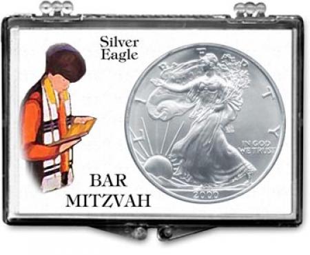 Edgar Marcus Snaplock Holders are made in the USA from high quality, crystal clear polystyrene. Each holder includes a cardboard insert featuring unique and beautiful artwork. The insert is hole-punched the perfect size to hold a coin relevant to the artwork. These holders are great for gift giving, rewards and storing and displaying collectible coins. This ''Bar Mitzvah'' themed holder is designed to hold a Silver Eagle coin. Coins shown in the picture are for illustration purposes only and are not included.