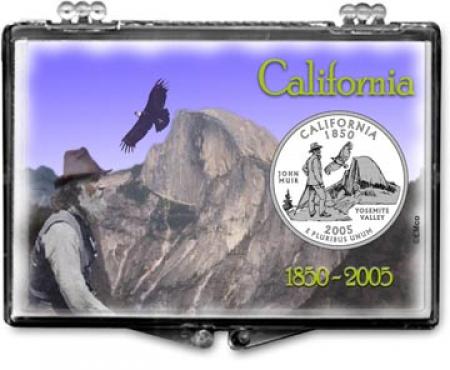 Edgar Marcus Snaplock Holders are made in the USA from high quality, crystal clear polystyrene. Each holder includes a cardboard insert featuring unique and beautiful artwork. The insert is hole-punched the perfect size to hold a coin relevant to the artwork. These holders are great for gift giving, rewards and storing and displaying collectible coins. This holder is designed to hold a California state (or national park) quarter and features ''Yosemite/John Muir'' artwork. Coins shown in the picture are for illustration purposes only and are not included.