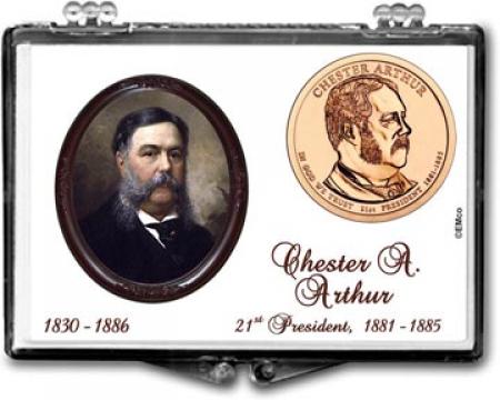 Edgar Marcus Snaplock Holders are made in the USA from high quality, crystal clear polystyrene. Each holder includes a cardboard insert featuring unique and beautiful artwork. The insert is hole-punched the perfect size to hold a coin relevant to the artwork. These holders are great for gift giving, rewards and storing and displaying collectible coins. This holder is designed to hold a Chester A. Arthur presidential dollar. The artwork includes a portrait of Chester A. Arthur, the order in which he was president, the years he served as president and the years of his birth and death. Coins shown in the picture are for illustration purposes only and are not included.