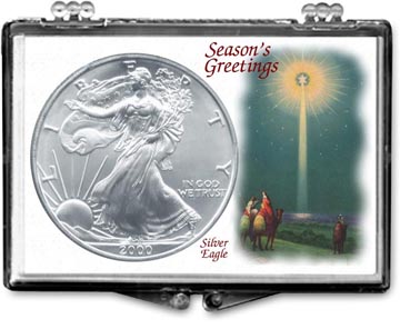 Edgar Marcus Snaplock Holders are made in the USA from high quality, crystal clear polystyrene. Each holder includes a cardboard insert featuring unique and beautiful artwork. The insert is hole-punched the perfect size to hold a coin relevant to the artwork. These holders are great for gift giving, rewards and storing and displaying collectible coins. This ''Christmas'' themed holder has a Star illustration and is designed to hold a Silver Eagle coin. Coins shown in the picture are for illustration purposes only and are not included.