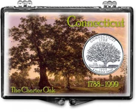 Edgar Marcus Snaplock Holders are made in the USA from high quality, crystal clear polystyrene. Each holder includes a cardboard insert featuring unique and beautiful artwork. The insert is hole-punched the perfect size to hold a coin relevant to the artwork. These holders are great for gift giving, rewards and storing and displaying collectible coins. This holder is designed to hold a Connecticut state (or national park) quarter and features ''Charter Oak'' artwork. Coins shown in the picture are for illustration purposes only and are not included.