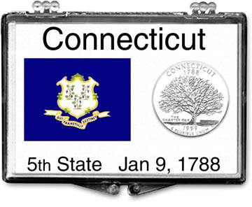 Edgar Marcus Snaplock Holders are made in the USA from high quality, crystal clear polystyrene. Each holder includes a cardboard insert featuring unique and beautiful artwork. The insert is hole-punched the perfect size to hold a coin relevant to the artwork. These holders are great for gift giving, rewards and storing and displaying collectible coins. This holder is designed to hold a Connecticut state (or national park) quarter. The artwork on the holder includes the Connecticut flag and the date Connecticut became a state. Coins shown in the picture are for illustration purposes only and are not included.