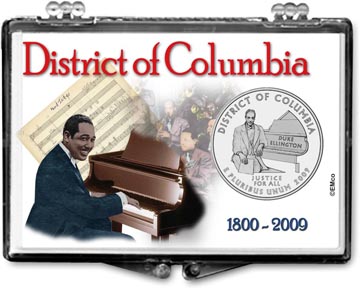 Edgar Marcus Snaplock Holders are made in the USA from high quality, crystal clear polystyrene. Each holder includes a cardboard insert featuring unique and beautiful artwork. The insert is hole-punched the perfect size to hold a coin relevant to the artwork. These holders are great for gift giving, rewards and storing and displaying collectible coins. This District of Columbia themed holder is designed to hold a District of Columbia territory (or national park) quarter. Coins shown in the picture are for illustration purposes only and are not included.
