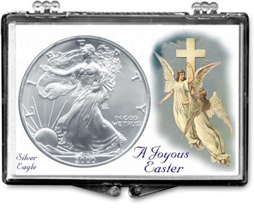 Edgar Marcus Snaplock Holders are made in the USA from high quality, crystal clear polystyrene. Each holder includes a cardboard insert featuring unique and beautiful artwork. The insert is hole-punched the perfect size to hold a coin relevant to the artwork. These holders are great for gift giving, rewards and storing and displaying collectible coins. This ''Easter'' themed holder has a Angels illustration and is designed to hold a Silver Eagle coin. Coins shown in the picture are for illustration purposes only and are not included.