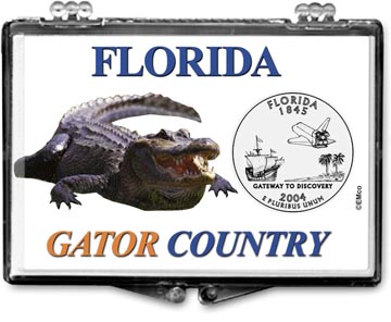 Edgar Marcus Snaplock Holders are made in the USA from high quality, crystal clear polystyrene. Each holder includes a cardboard insert featuring unique and beautiful artwork. The insert is hole-punched the perfect size to hold a coin relevant to the artwork. These holders are great for gift giving, rewards and storing and displaying collectible coins. This holder is designed to hold a Florida state (or national park) quarter and features ''Gator Country'' artwork. Coins shown in the picture are for illustration purposes only and are not included.