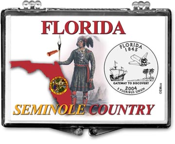 Edgar Marcus Snaplock Holders are made in the USA from high quality, crystal clear polystyrene. Each holder includes a cardboard insert featuring unique and beautiful artwork. The insert is hole-punched the perfect size to hold a coin relevant to the artwork. These holders are great for gift giving, rewards and storing and displaying collectible coins. This holder is designed to hold a Florida state (or national park) quarter and features ''Seminole Country'' artwork. Coins shown in the picture are for illustration purposes only and are not included.