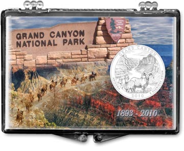 Edgar Marcus Snaplock Holders are made in the USA from high quality, crystal clear polystyrene. Each holder includes a cardboard insert featuring unique and beautiful artwork. The insert is hole-punched the perfect size to hold a coin relevant to the artwork. These holders are great for gift giving, rewards and storing and displaying collectible coins. This Grand Canyon National Park themed holder is designed to hold an Grand Canyon National Park national park quarter. Coins shown in the picture are for illustration purposes only and are not included.