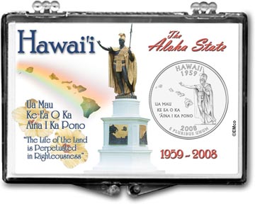 Edgar Marcus Snaplock Holders are made in the USA from high quality, crystal clear polystyrene. Each holder includes a cardboard insert featuring unique and beautiful artwork. The insert is hole-punched the perfect size to hold a coin relevant to the artwork. These holders are great for gift giving, rewards and storing and displaying collectible coins. This holder is designed to hold a Hawaii state (or national park) quarter and features ''Aloha'' artwork. Coins shown in the picture are for illustration purposes only and are not included.