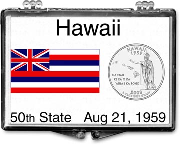 Edgar Marcus Snaplock Holders are made in the USA from high quality, crystal clear polystyrene. Each holder includes a cardboard insert featuring unique and beautiful artwork. The insert is hole-punched the perfect size to hold a coin relevant to the artwork. These holders are great for gift giving, rewards and storing and displaying collectible coins. This holder is designed to hold a Hawaii state (or national park) quarter. The artwork on the holder includes the Hawaii flag and the date Hawaii became a state. Coins shown in the picture are for illustration purposes only and are not included.