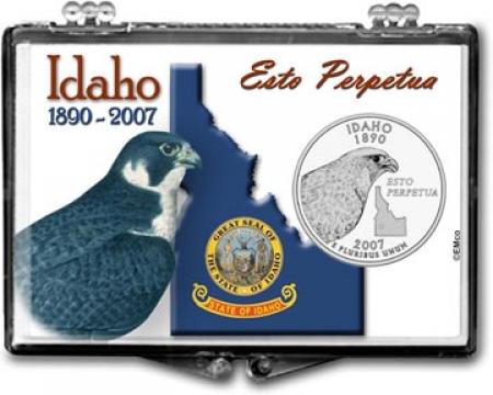 Edgar Marcus Snaplock Holders are made in the USA from high quality, crystal clear polystyrene. Each holder includes a cardboard insert featuring unique and beautiful artwork. The insert is hole-punched the perfect size to hold a coin relevant to the artwork. These holders are great for gift giving, rewards and storing and displaying collectible coins. This holder is designed to hold an Idaho state (or national park) quarter and features ''Esto Perpetua'' artwork. Coins shown in the picture are for illustration purposes only and are not included.