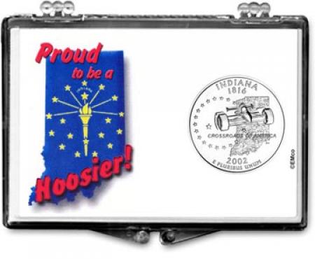 Edgar Marcus Snaplock Holders are made in the USA from high quality, crystal clear polystyrene. Each holder includes a cardboard insert featuring unique and beautiful artwork. The insert is hole-punched the perfect size to hold a coin relevant to the artwork. These holders are great for gift giving, rewards and storing and displaying collectible coins. This holder is designed to hold an Indiana state (or national park) quarter and features ''Proud To Be A Hoosier'' artwork. Coins shown in the picture are for illustration purposes only and are not included.