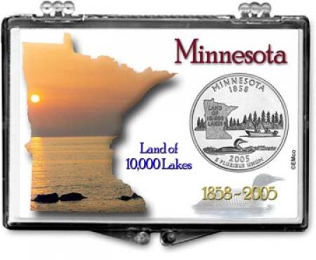 Edgar Marcus Snaplock Holders are made in the USA from high quality, crystal clear polystyrene. Each holder includes a cardboard insert featuring unique and beautiful artwork. The insert is hole-punched the perfect size to hold a coin relevant to the artwork. These holders are great for gift giving, rewards and storing and displaying collectible coins. This holder is designed to hold a Minnesota state (or national park) quarter and features ''Land Of 10,000 Lakes'' artwork. Coins shown in the picture are for illustration purposes only and are not included.
