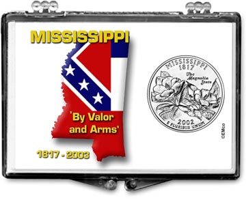 Edgar Marcus Snaplock Holders are made in the USA from high quality, crystal clear polystyrene. Each holder includes a cardboard insert featuring unique and beautiful artwork. The insert is hole-punched the perfect size to hold a coin relevant to the artwork. These holders are great for gift giving, rewards and storing and displaying collectible coins. This holder is designed to hold a Mississippi state (or national park) quarter and features ''State Motto'' artwork. Coins shown in the picture are for illustration purposes only and are not included.