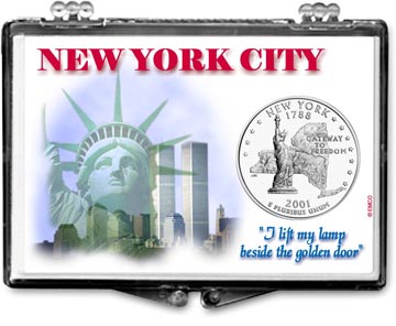 Edgar Marcus Snaplock Holders are made in the USA from high quality, crystal clear polystyrene. Each holder includes a cardboard insert featuring unique and beautiful artwork. The insert is hole-punched the perfect size to hold a coin relevant to the artwork. These holders are great for gift giving, rewards and storing and displaying collectible coins. This holder is designed to hold a New York state (or national park) quarter and features ''New York City'' artwork. Coins shown in the picture are for illustration purposes only and are not included.