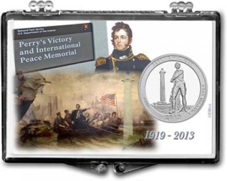 Edgar Marcus Snaplock Holders are made in the USA from high quality, crystal clear polystyrene. Each holder includes a cardboard insert featuring unique and beautiful artwork. The insert is hole-punched the perfect size to hold a coin relevant to the artwork. These holders are great for gift giving, rewards and storing and displaying collectible coins. This Perry's Victory and International Peace Memorial themed holder is designed to hold an Perry's Victory and International Peace Memorial national park quarter. Coins shown in the picture are for illustration purposes only and are not included.
