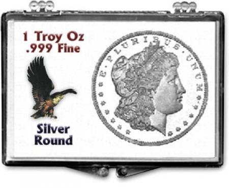 Edgar Marcus Snaplock Holders are made in the USA from high quality, crystal clear polystyrene. Each holder includes a cardboard insert featuring unique and beautiful artwork. The insert is hole-punched the perfect size to hold a coin relevant to the artwork. These holders are great for gift giving, rewards and storing and displaying collectible coins. This silver round holder is designed to hold a 39mm one ounce bullion silver round. The holder artwork features an eagle on a white background. Coins shown in the picture are for illustration purposes only and are not included.