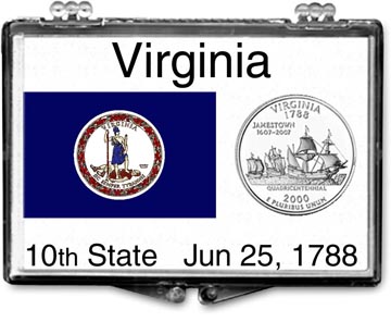 Edgar Marcus Snaplock Holders are made in the USA from high quality, crystal clear polystyrene. Each holder includes a cardboard insert featuring unique and beautiful artwork. The insert is hole-punched the perfect size to hold a coin relevant to the artwork. These holders are great for gift giving, rewards and storing and displaying collectible coins. This holder is designed to hold a Virginia state (or national park) quarter. The artwork on the holder includes the Virginia flag and the date Virginia became a state. Coins shown in the picture are for illustration purposes only and are not included.