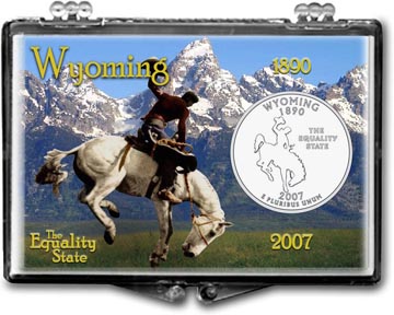Edgar Marcus Snaplock Holders are made in the USA from high quality, crystal clear polystyrene. Each holder includes a cardboard insert featuring unique and beautiful artwork. The insert is hole-punched the perfect size to hold a coin relevant to the artwork. These holders are great for gift giving, rewards and storing and displaying collectible coins. This holder is designed to hold a Wyoming state (or national park) quarter and features ''Cowboy'' artwork. Coins shown in the picture are for illustration purposes only and are not included.