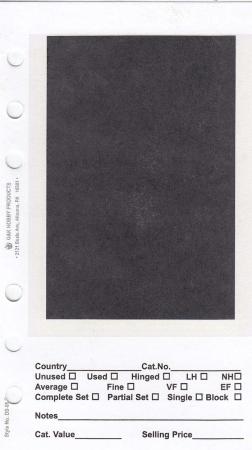 The all clear film on these dealer sales pages stays firmly affixed to page. No matter how many you buy you can count on them being consistent: holes always punched in the same postion and quality and color always match. Black background that does not rub off. Printed on card stock. Pack of 250 pages.