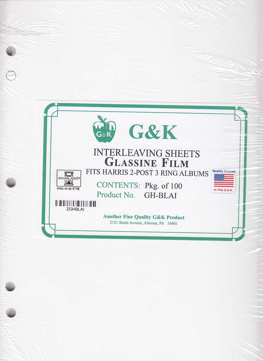 G&K Interleaving made of glassine to fit Harris Albums. Package of 100 interleaves.