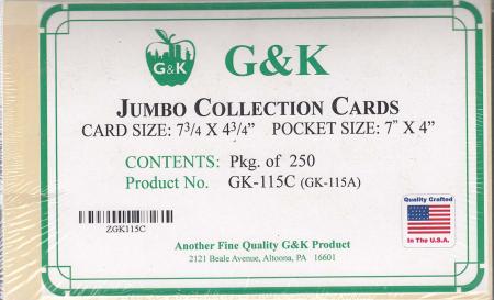 G&K Jumbo Dealer Cards (110A) -- 8 1/2 x 5 1/2 -- Manilla