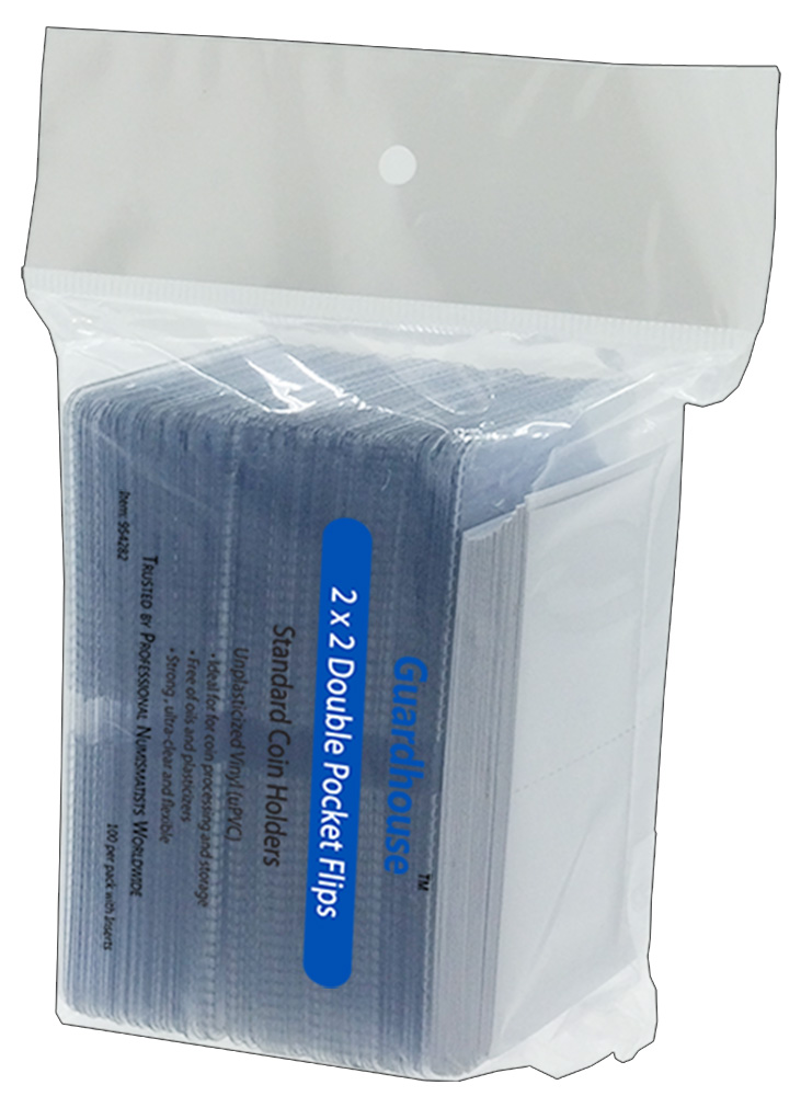Pre-separated, 7mil, double polished unplasticized vinyl flips are a safe and reliable way to store and process coins. Guardhouse flips do not require tearing to separate and feature rounded corners that will not poke or cut your hands. These flips are about 20% thicker than other standard coin flips, and designed for medium to long term storage needs.