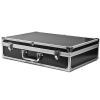 The exterior showcases a black diamond textured finish, complemented by reinforced silver-toned metal corners and edges for a sleek, professional appearance. Inside the lid, a felt-like lining enhances the overall aesthetic. A dual latch keeps the lid securely closed, and built-in legs allow the box to stand upright, making this box perfect for collectors who value both portability and organized presentation at home.