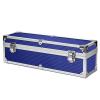 The exterior showcases a vibrant royal blue ribbed finish, complemented by reinforced silver-toned metal corners and edges for a sleek, professional appearance. Inside the lid, a felt-like lining enhances the overall aesthetic. A dual latch keeps the lid securely closed, making this box perfect for collectors who value both portability and organized presentation at home.