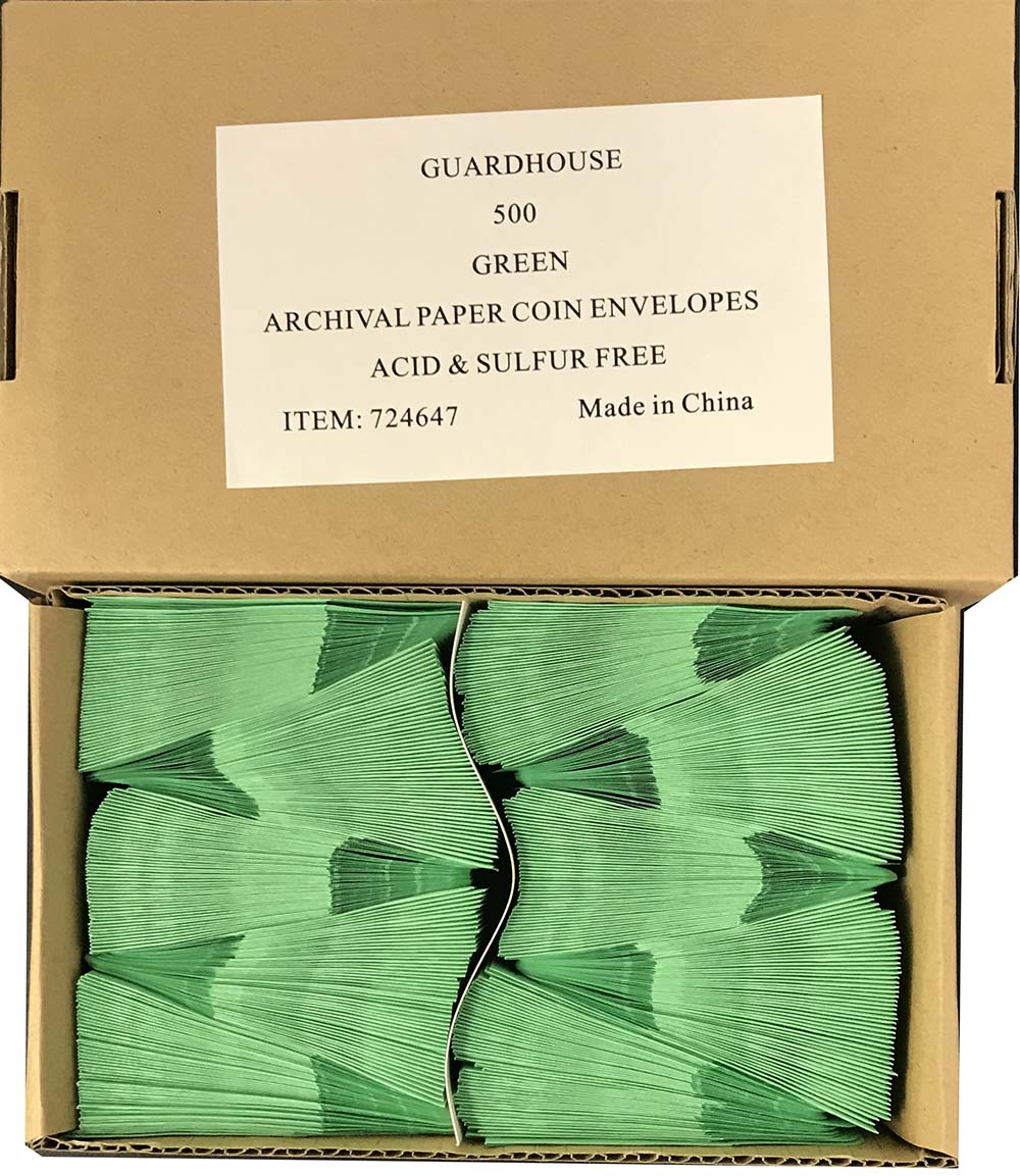 Guardhouse paper coin envelopes are made with acid and sulphur free, PH neutral paper for short and long term coin storage. Sold in packs of 50 or boxes of 500.